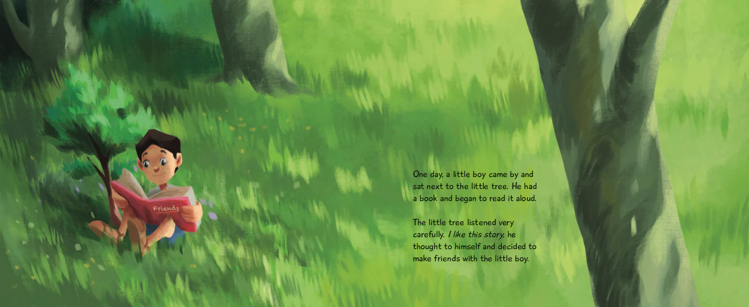 Look inside the book  |  Get the E-bookIn this illustrated ode to books and reading, literacy and libraries are promoted and celebrated. A little tree and a little boy form a friendship over their love of books. In time, the tree is adorned with every book the little boy reads to the tree. Soon, a whole community of people can enjoy the magnificent tree of spectacular books. But with time, both the tree and the boy grow older. Now the boy is an old man and must say goodbye. What is to become of the grand old tree?